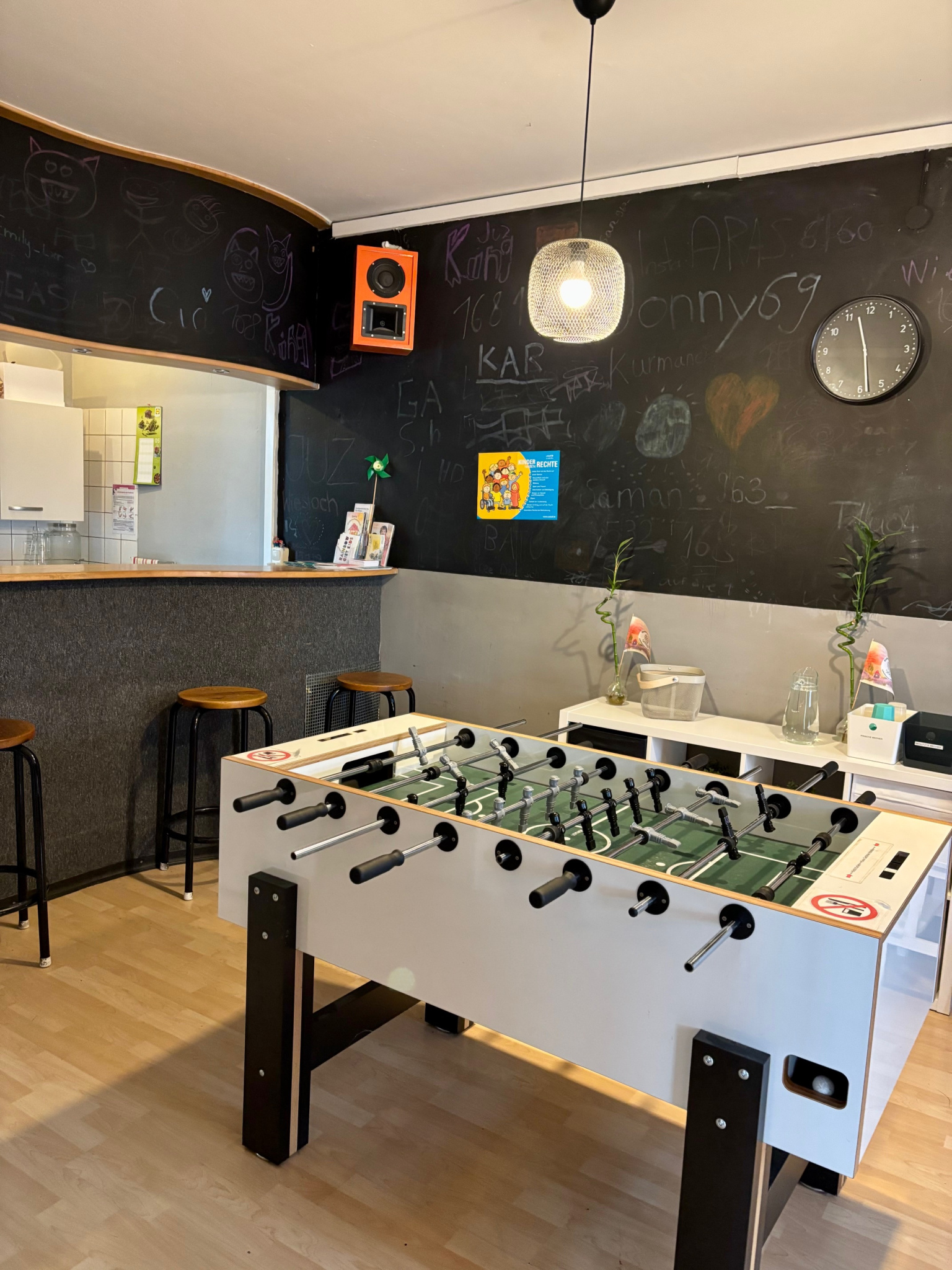 Zusätzlich zu unserem offenen Treff, bei welchem alle Kinder- und Jugendlichen zwischen 8 und 21 Jahren kommen können, bieten wir regelmäßig Klettern und Töpfern an. Darüber hinaus gibt es einen Kidstreff für unsere jüngeren Besuchenden zwischen 8 und 14 Jahren. Im Anschluss an den Kidstreff dürfen unsere älteren Besuchenden den Jugendtreff besuchen. Montags und Mittwochs gibt es immer kostenlos frisches Obst und Gemüse.