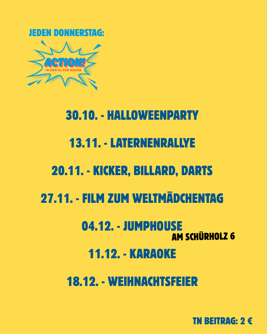 Donnerstags wird es in der Alten Kasse wild und spannend – wir toben, entdecken, probieren Neues aus und sind viel unterwegs! Beim actionreichen Spaß können Kinder im Grundschulalter ihre Energie ausleben und neue Abenteuer erleben.