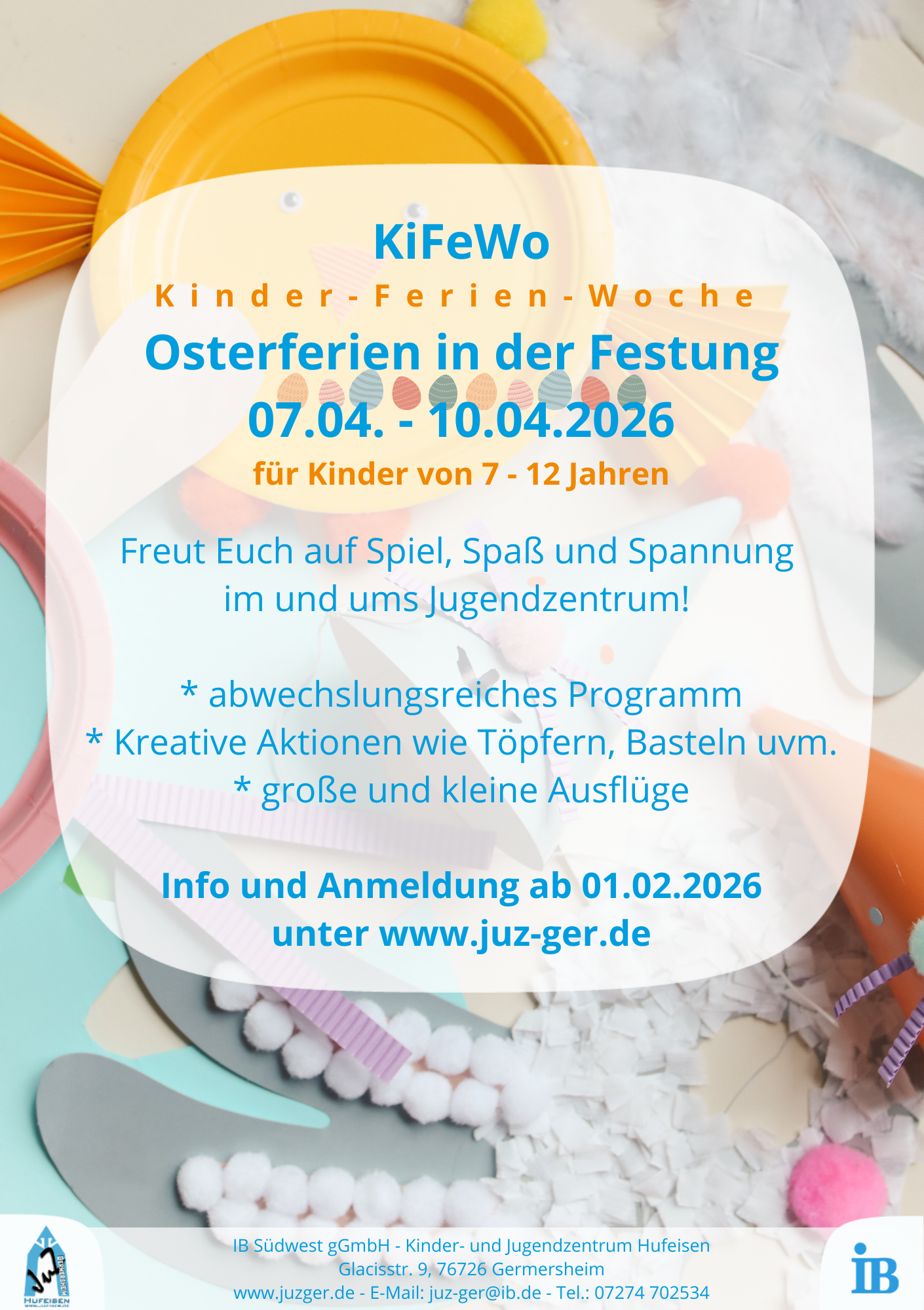 Die Ferienbetreuung beginnt täglich um 8:30 Uhr am Kinder- und Jugendzentrum Hufeisen in Germersheim und endet um 16.00 Uhr.