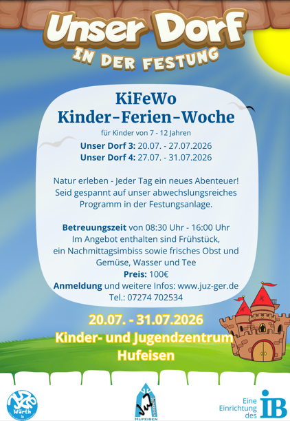 vom 20.07. – 24.07.2026 und vom 27.07. – 31.07.2026