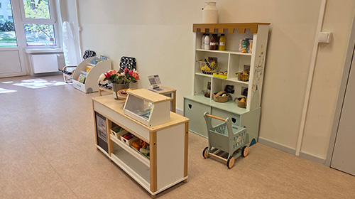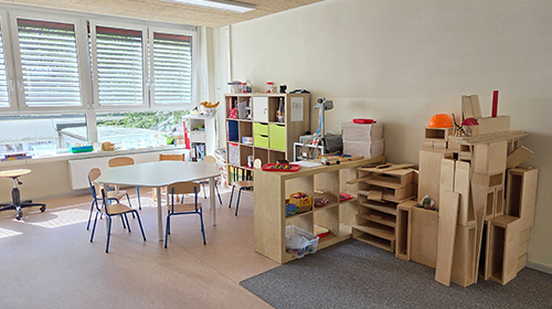 - Im Bereich Orange & Blau befinden sich unsere offenen Lernwerkstätten für Kinder ab 4 Jahren bis zum Schuleintritt. Hier können die Kinder in verschiedenen Bildungsschwerpunkten wie Mathematik, Konstruktion, Sprachkultur und Theater vertieft arbeiten. Die Materialien sind so abgestimmt, dass sie selbstbestimmtes Lernen fördern. Feste Morgenkreise und Mittagstreffs bieten den Kindern Struktur und stärken die Bindung zu ihren Bezugserzieher*innen.