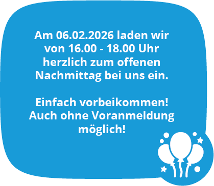 Liebe Eltern und Familien, wir laden herzlich ein zum offenen Nachmittag am 06. Februar 2026 von 16 - 18 Uhr. Komen Sie vorbei und lernen unsere Kinderkrippe in Erlangen kennen. Es erwartet Sie ein gemütlicher Nachmittag, bei dem Sie unsere Räumlichkeiten entdecken, unser engagiertes Team kennenlernen und mehr über unser pädagogisches Konzept erfahren können.