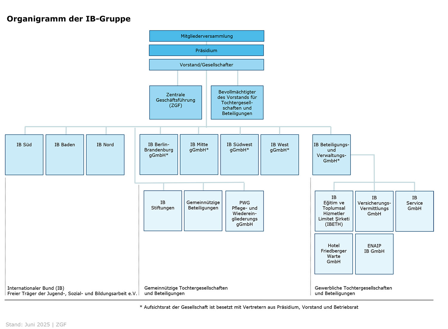 Der Internationale Bund (IB) ist mit seinem Verein und seinen Gesellschaften einer der großen Anbieter der Jugend-, Sozial- und Bildungsarbeit in Deutschland. Präsidentin des IB e.V. ist die ehemalige Bundestagsabgeordnete Petra Merkel. Unterstützt wird sie von einem ehrenamtlichen Präsidium, das Vertreter aus verschiedenen Bereichen des öffentlichen Lebens, der Sozialpartner, Parteien, sowie aus der Wirtschaft, Wissenschaft und Verwaltung umfasst. Diese facettenreiche Leitungsebene zeigt das breite Spektrum an Perspektiven und Kompetenzen, die sich im IB engagieren, um sich für das Wohl der Gesellschaft einzusetzen.